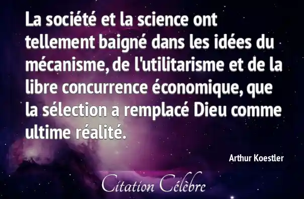 La société et la science ont tellement baigné dans les idées du mécanisme, de l'utilitarisme et de la libre concurrence économique, que la sélection a remplacé Dieu comme ultime réalité.