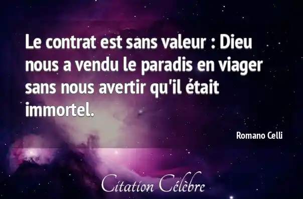 Le contrat est sans valeur : Dieu nous a vendu le paradis en viager sans nous avertir qu'il était immortel.