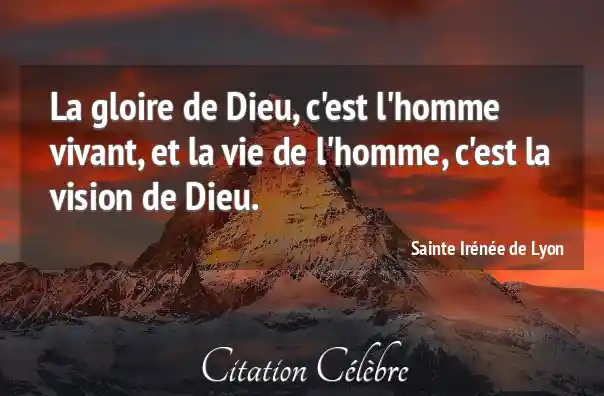 La gloire de Dieu, c'est l'homme vivant, et la vie de l'homme, c'est la vision de Dieu.