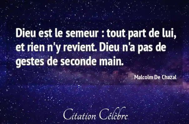 Dieu est le semeur : tout part de lui, et rien n'y revient. Dieu n'a pas de gestes de seconde main.