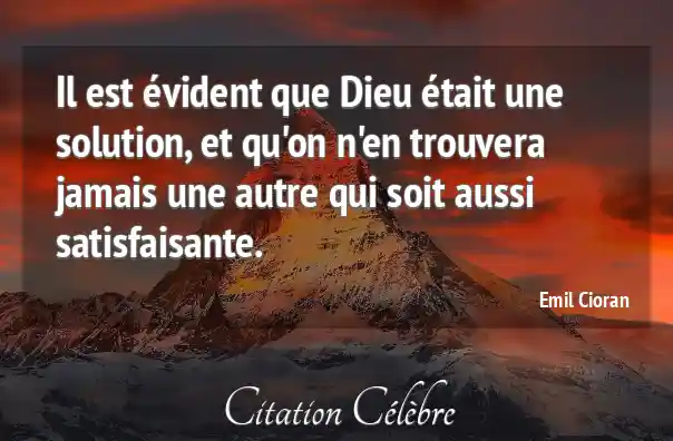 Il est évident que Dieu était une solution, et qu'on n'en trouvera jamais une autre qui soit aussi satisfaisante.