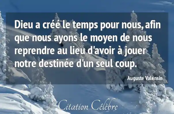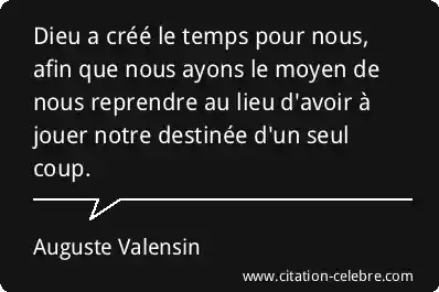 Dieu a créé le temps pour nous, afin que nous ayons le moyen de nous reprendre au lieu d'avoir à jouer notre destinée d'un seul coup.