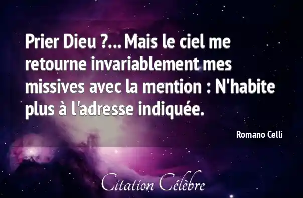Prier Dieu ?... Mais le ciel me retourne invariablement mes missives avec la mention : N'habite plus à l'adresse indiquée.