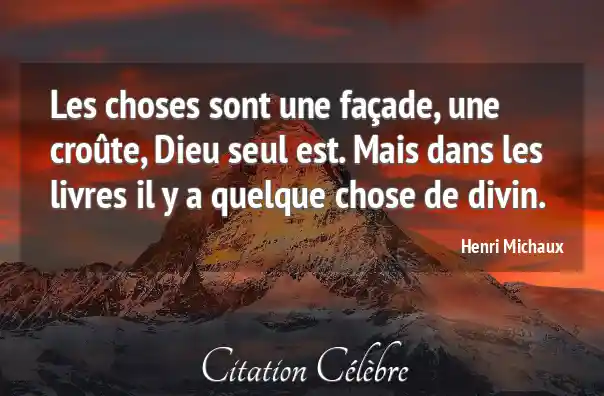 Les choses sont une façade, une croûte, Dieu seul est. Mais dans les livres il y a quelque chose de divin.