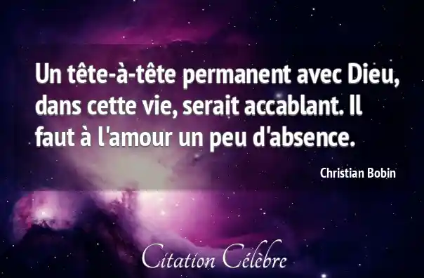 Un tête-à-tête permanent avec Dieu, dans cette vie, serait accablant. Il faut à l'amour un peu d'absence.