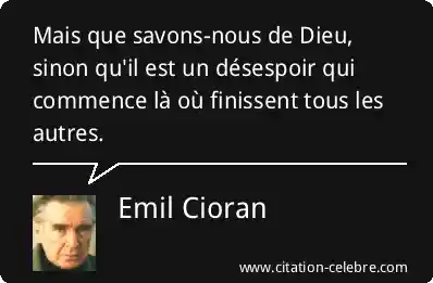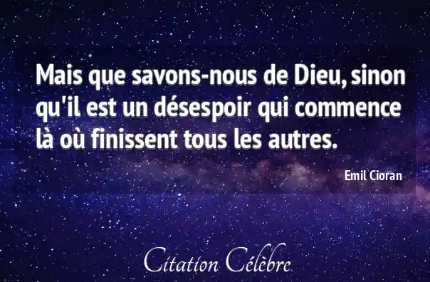 Mais que savons-nous de Dieu, sinon qu'il est un désespoir qui commence là où finissent tous les autres.