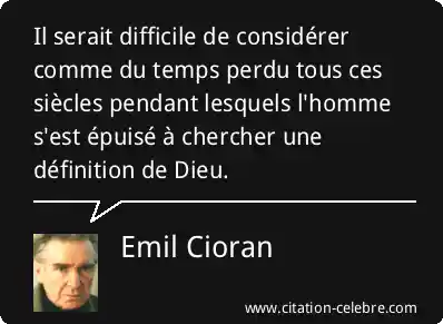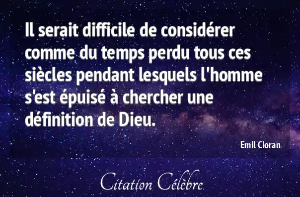 Il serait difficile de considérer comme du temps perdu tous ces siècles pendant lesquels l'homme s'est épuisé à chercher une définition de Dieu.