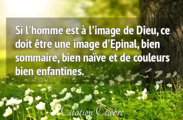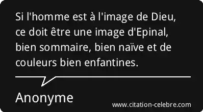 Si l'homme est à l'image de Dieu, ce doit être une image d'Epinal, bien sommaire, bien naïve et de couleurs bien enfantines.