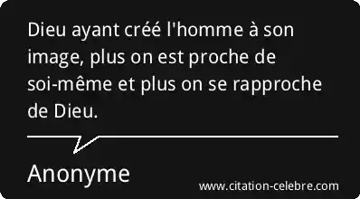 Dieu ayant créé l'homme à son image, plus on est proche de soi-même et plus on se rapproche de Dieu.