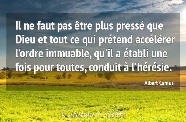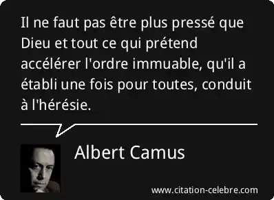 Il ne faut pas être plus pressé que Dieu et tout ce qui prétend accélérer l'ordre immuable, qu'il a établi une fois pour toutes, conduit à l'hérésie.