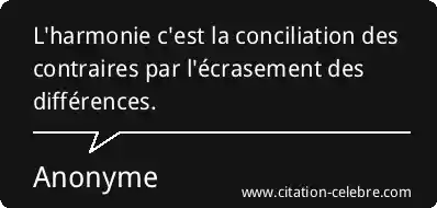 L'harmonie c'est la conciliation des contraires par l'écrasement des différences.