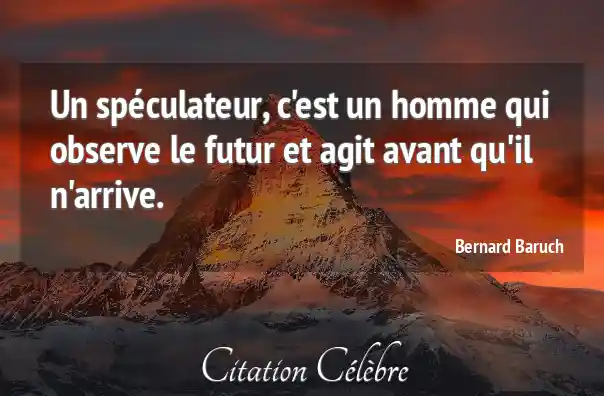Un spéculateur, c'est un homme qui observe le futur et agit avant qu'il n'arrive.