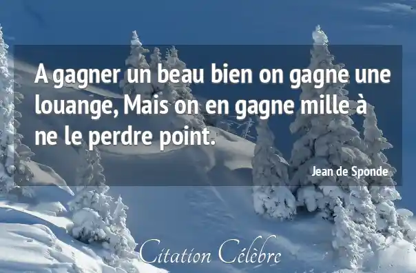 A gagner un beau bien on gagne une louange, Mais on en gagne mille à ne le perdre point.