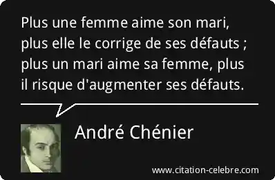 Plus une femme aime son mari, plus elle le corrige de ses défauts ; plus un mari aime sa femme, plus il risque d'augmenter ses défauts.
