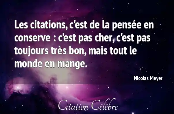 Les citations, c'est de la pensée en conserve : c'est pas cher, c'est pas toujours très bon, mais tout le monde en mange.