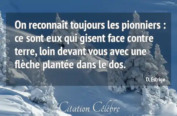 On reconnaît toujours les pionniers : ce sont eux qui gisent face contre terre, loin devant vous avec une flèche plantée dans le dos.