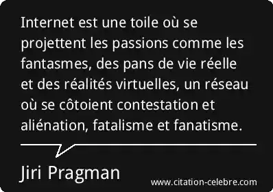 Internet est une toile où se projettent les passions comme les fantasmes, des pans de vie réelle et des réalités virtuelles, un réseau où se côtoient contestation et aliénation, fatalisme et fanatisme.