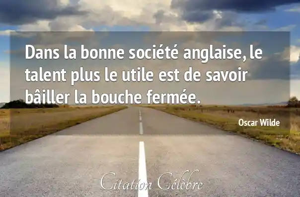 Dans la bonne société anglaise, le talent plus le utile est de savoir bâiller la bouche fermée.