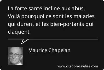 La forte santé incline aux abus. Voilà pourquoi ce sont les malades qui durent et les bien-portants qui claquent.
