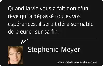 Quand la vie vous a fait don d'un rêve qui a dépassé toutes vos espérances, il serait déraisonnable de pleurer sur sa fin.