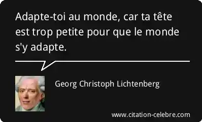 Adapte-toi au monde, car ta tête est trop petite pour que le monde s'y adapte.