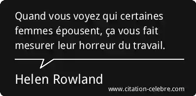 Quand vous voyez qui certaines femmes épousent, ça vous fait mesurer leur horreur du travail.