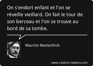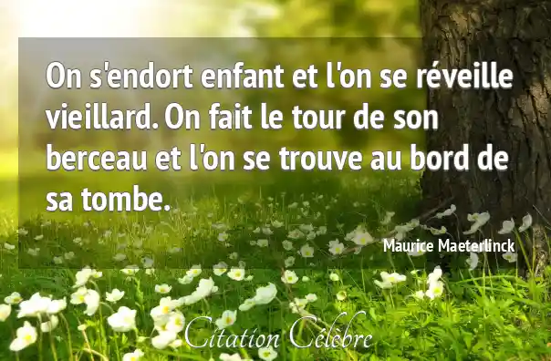 On s'endort enfant et l'on se réveille vieillard. On fait le tour de son berceau et l'on se trouve au bord de sa tombe.