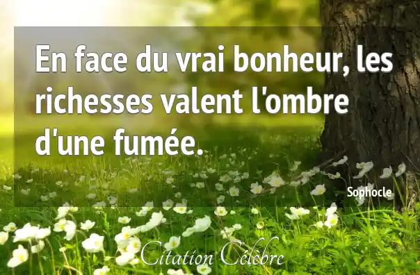En face du vrai bonheur, les richesses valent l'ombre d'une fumée.