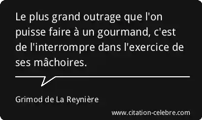 Le plus grand outrage que l'on puisse faire à un gourmand, c'est de l'interrompre dans l'exercice de ses mâchoires.
