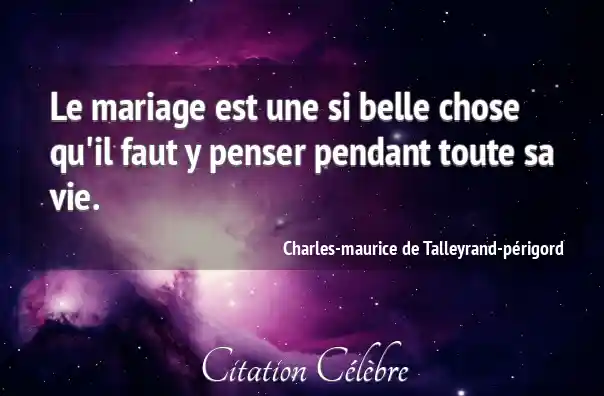 Le mariage est une si belle chose qu'il faut y penser pendant toute sa vie.
