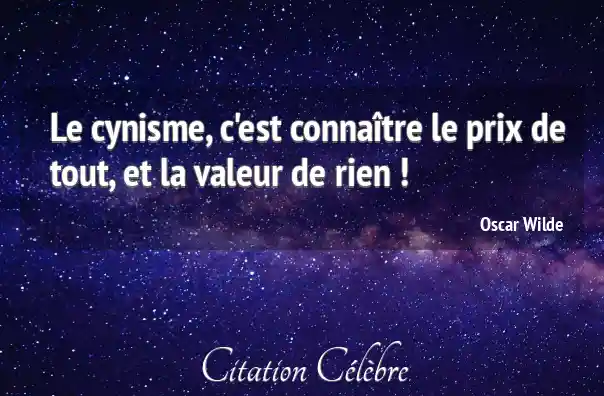 Le cynisme, c'est connaître le prix de tout, et la valeur de rien !