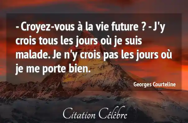 - Croyez-vous à la vie future ? - J'y crois tous les jours où je suis malade. Je n'y crois pas les jours où je me porte bien.