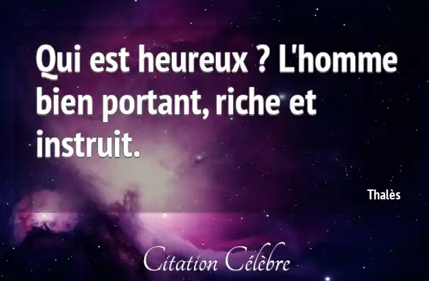 Qui est heureux ? L'homme bien portant, riche et instruit.