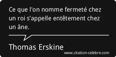 Citation Thomas Erskine roi : Ce que l'on nomme fermeté chez un roi s'appelle entêtement...