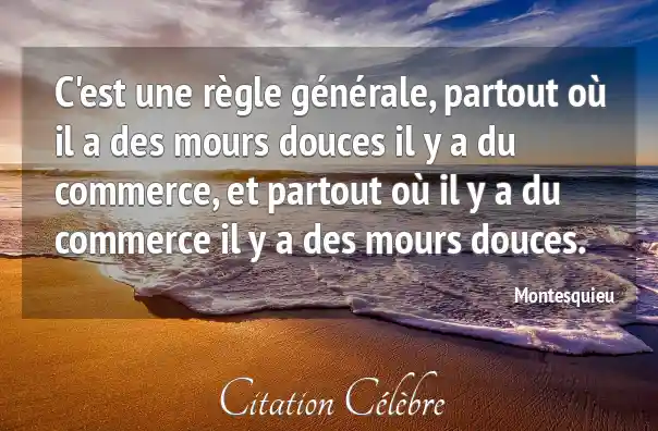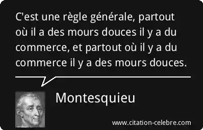 C'est une règle générale, partout où il a des mours douces il y a du commerce, et partout où il y a du commerce il y a des mours douces.