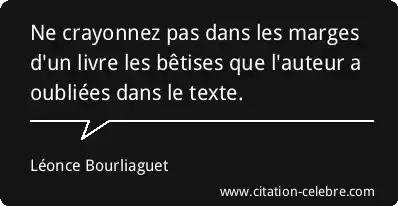 Ne crayonnez pas dans les marges d'un livre les bêtises que l'auteur a oubliées dans le texte.