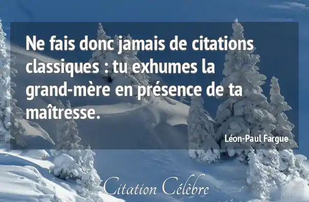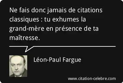 Ne fais donc jamais de citations classiques : tu exhumes la grand-mère en présence de ta maîtresse.
