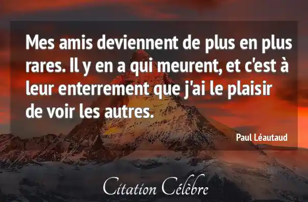 Mes amis deviennent de plus en plus rares. Il y en a qui meurent, et c'est à leur enterrement que j'ai le plaisir de voir les autres.