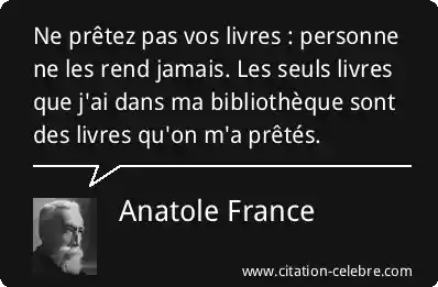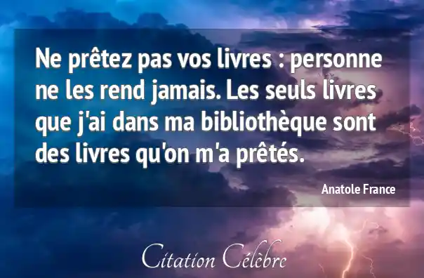 Ne prêtez pas vos livres : personne ne les rend jamais. Les seuls livres que j'ai dans ma bibliothèque sont des livres qu'on m'a prêtés.