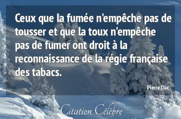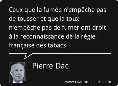 Ceux que la fumée n'empêche pas de tousser et que la toux n'empêche pas de fumer ont droit à la reconnaissance de la régie française des tabacs.