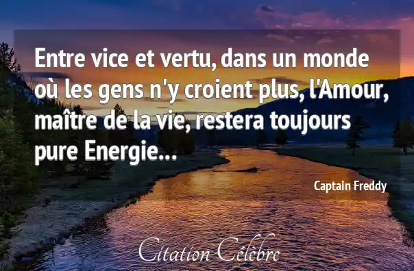 Entre vice et vertu, dans un monde où les gens n'y croient plus, l'Amour, maître de la vie, restera toujours pure Energie...