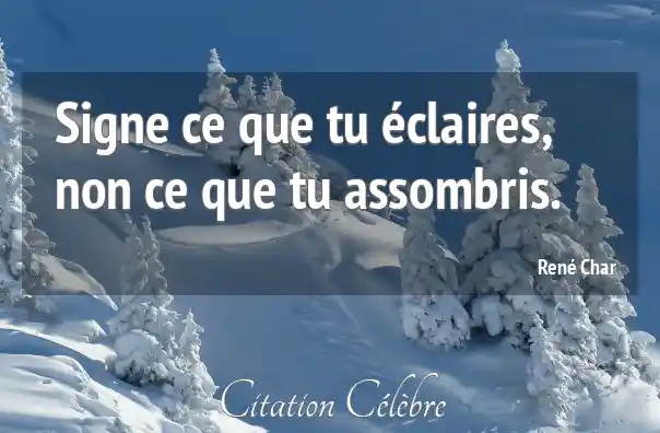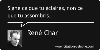 Citation René Char non : Signe ce que tu éclaires, non ce que tu assombris....
