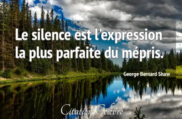 Cette citation de George Bernard Shaw, "Le silence est l'expression la plus parfaite du mépris," signifie que le fait de ne rien dire face à quelqu'un ou à une situation est le moyen le plus abouti et le plus puissant de montrer son dédain ou son indifférence totale. Le silence, dans ce contexte, n'est pas une absence de communication, mais une communication active et tranchante du rejet.