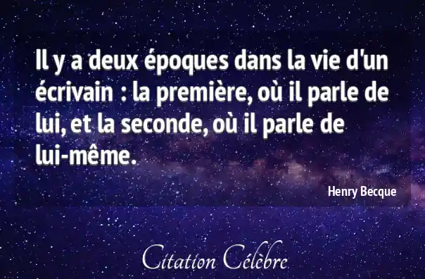 Il y a deux époques dans la vie d'un écrivain : la première, où il parle de lui, et la seconde, où il parle de lui-même.