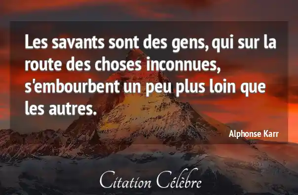 Les savants sont des gens, qui sur la route des choses inconnues, s'embourbent un peu plus loin que les autres.