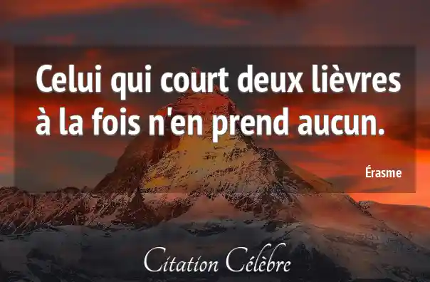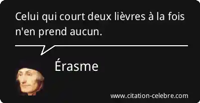 Citation Érasme deux : Celui qui court deux lièvres à la fois n'en prend...
