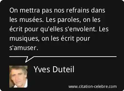 On mettra pas nos refrains dans les musées. Les paroles, on les écrit pour qu'elles s'envolent. Les musiques, on les écrit pour s'amuser.