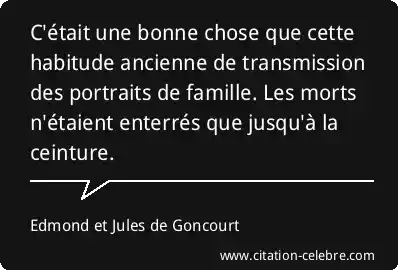C'était une bonne chose que cette habitude ancienne de transmission des portraits de famille. Les morts n'étaient enterrés que jusqu'à la ceinture.