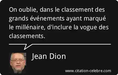On oublie, dans le classement des grands événements ayant marqué le millénaire, d'inclure la vogue des classements.