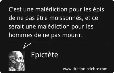 C'est une malédiction pour les épis de ne pas être moissonnés, et ce serait une malédiction pour les hommes de ne pas mourir.